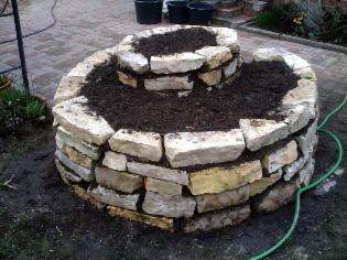 Kräuterspirale Was gibt es Schöneres, als frische Kräuter direkt aus dem eigenen Garten zu verwenden? In einer Kräuterspirale wie dieser muss man kein Gärtner sein, um dieses Ziel zu erreichen. Die grob behauenen Sandsteine nehmen im Frühjahr schon die kleinsten Sonnenstrahlen auf und erwärmen den Boden, so dass besonders früh mit der Ernte begonnen werden kann. Ein weiterer Vorteil ist der geringe Platzanspruch und Kräuter wie Thymian oder Bohnenkraut kann man seitlich in die Fugen pflanzen, so dass Teile der Kräuterspirale wie mit einem würzigen Polster bedeckt wirkenl | |