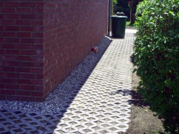 Rasengittersteine Eine einfache und preiswerte Alternative, um Wege dekorativ zu befestigen. Die kleinen Rauten können mit Rasen eingesät oder (wenn der Weg nur selten begangen wird) auch mit Moosen oder Polsterstauden bepflanzt werden. Auch in Verbindung mit einem anschließendem, farbigen Pflaster wirken Rasengittersteine attraktiv. |